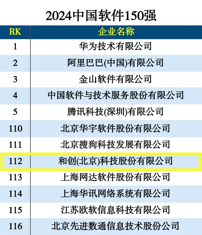2024年10月24日,在中國科學(xué)院旗下權(quán)威媒體《互聯(lián)網(wǎng)周刊》與德本咨詢等機構(gòu)聯(lián)合發(fā)布的“2024年中國軟件150強”榜單中,和創(chuàng)科技榮幸地被評選為中國軟件行業(yè)的杰出企業(yè)。該榜單依據(jù)嚴謹?shù)脑u估體系,從技術(shù)實力、市場地位、服務(wù)質(zhì)量、發(fā)展?jié)摿Α⑸鐣绊憽⑿袠I(yè)貢獻及管理效率等多個維度進行評定,確保評價的公正性和權(quán)威性。這一殊榮不僅是對和創(chuàng)科技在軟件開發(fā)和技術(shù)創(chuàng)新領(lǐng)域的認可,也標志著公司在數(shù)字化智能云服務(wù)領(lǐng)域的持續(xù)進步。
