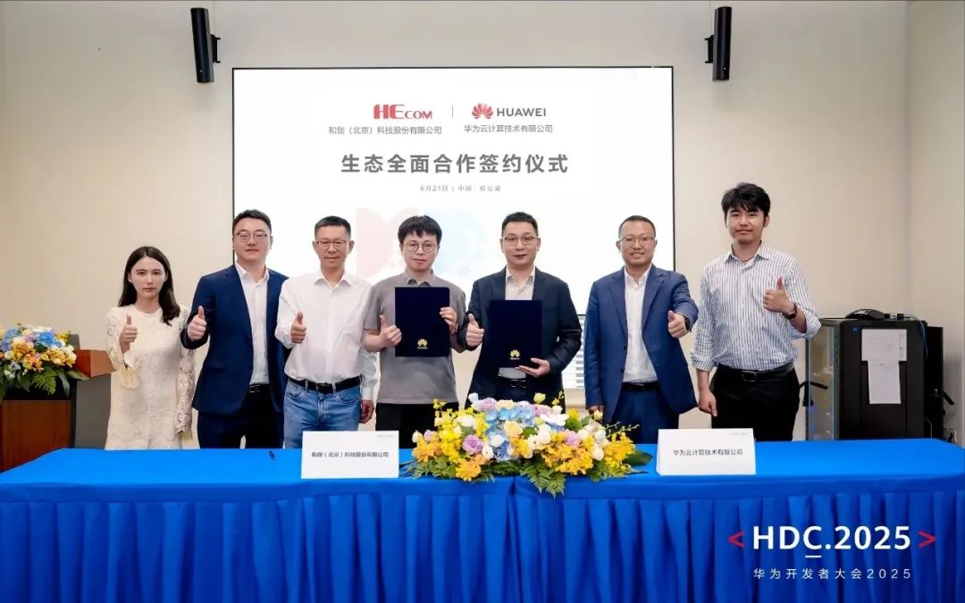 在2025華為開發(fā)者大會期間,和創(chuàng)(北京)科技股份有限公司(以下簡稱“和創(chuàng)科技”)與華為云計(jì)算技術(shù)有限公司(以下簡稱“華為云”)簽署生態(tài)全面合作協(xié)議,雙方將在聯(lián)合解決方案構(gòu)建、AI應(yīng)用開發(fā)及行業(yè)大模型共創(chuàng)等領(lǐng)域展開全方位合作,共同推動新一代人工智能產(chǎn)品在工程行業(yè)的應(yīng)用落地。在和創(chuàng)科技CEO劉學(xué)臣、華為云生態(tài)發(fā)展與運(yùn)營部部長陶志強(qiáng)的共同見證下,和創(chuàng)科技副總裁王禹、華為云北京云生態(tài)發(fā)展與運(yùn)營部部長代表雙方完成簽約。