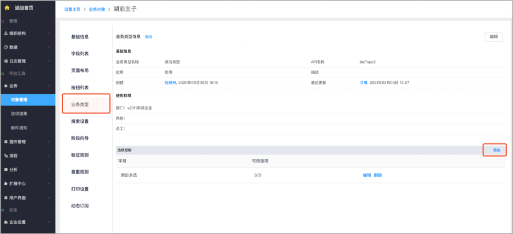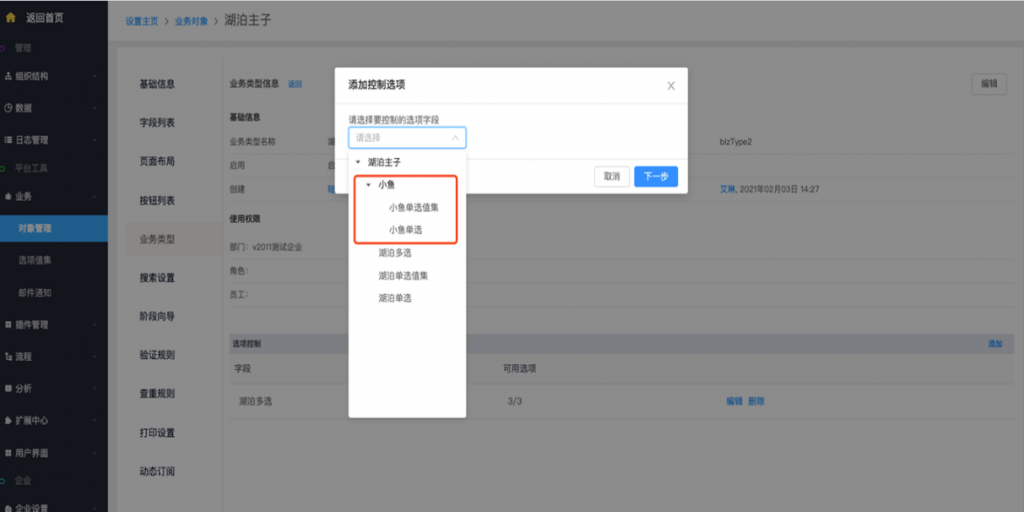 - 主對象業(yè)務(wù)類型控制子對象:主對象的業(yè)務(wù)類型可以控制子對象的單選及多選字段