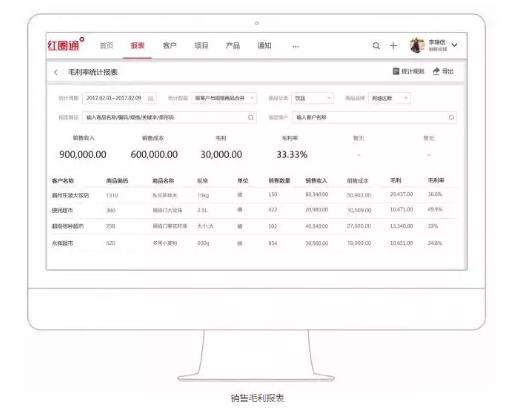 為幫助企業(yè)清晰地獲知銷售收入與利潤、做出更合適的業(yè)務(wù)決策,紅圈通進(jìn)銷存提供了銷售毛利報表、訂退單報表、商品銷售報表、客戶訂貨報表、區(qū)域銷售報表等五大類報表,從訂單變動趨勢、商品、客戶、區(qū)域等多個角度進(jìn)行數(shù)據(jù)分析統(tǒng)計。通過報表,企業(yè)可實(shí)時掌控銷售現(xiàn)狀、獲知市場布局,進(jìn)而優(yōu)化資源投放。