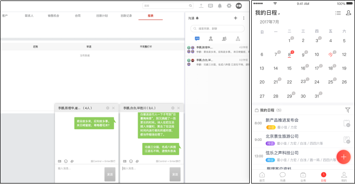 紅圈CRM+能夠幫助企業(yè)員工圍繞業(yè)務(wù)緊密協(xié)同,例如項目進展信息在項目成員中共享,再如通過移動的考勤、日程、審批、公告等,提高跨團隊協(xié)同工作的效率,快速推動銷售、施工等各項工作。