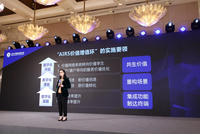 第一個叫場景連通,也就是說當數(shù)字技術運用到每個企業(yè)當中的時候,其實是改變這個企業(yè)上下游的關系,使得新的價值空間出現(xiàn)。如果沒有數(shù)字技術的時候,上下游的關系是沒有辦法被重構的。而今天數(shù)字技術重構它之后,其實就有了一個新的價值主張空間,這是一個新的空間出現(xiàn)。