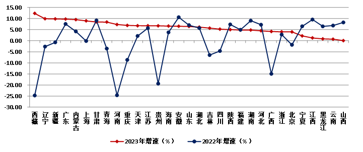 圖24  2023年各地區建筑業企業房屋建筑施工面積及增長情況