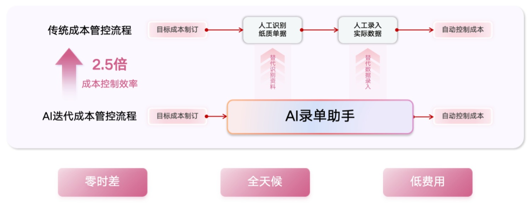 借助AI錄單助手,企業(yè)在保證最低管理成本的同時,建立起穩(wěn)健的成本鏈條,實現(xiàn)高效的成本管理與項目推進,不僅能夠提升數據質量,也能極大提升員工的工作效率與幸福度。